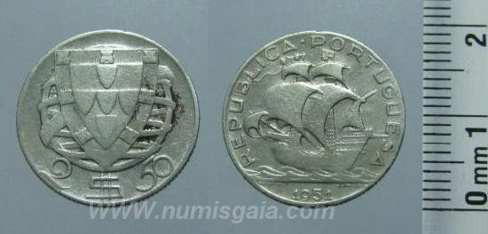 227l KM#580 Portugal - 2,50 Escudos 1951 (Prata)